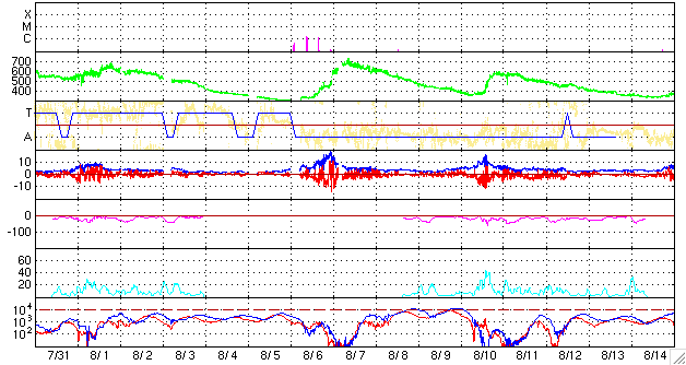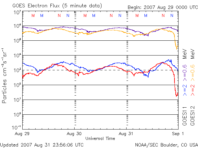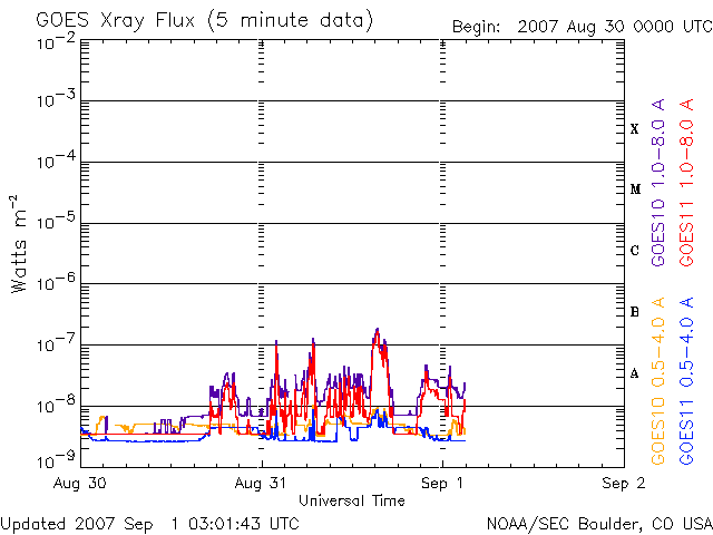 (c) NOAA/SEC ![]() SOHO衛星のMDIカメラによる太陽黒点 (c) SOHO (ESA & NASA) ![]() GOES衛星の太陽X線データ (c) NOAA/SEC ![]() | ||||||||||||||||||||||||||||||||||||||||||||||||||||||||||||||