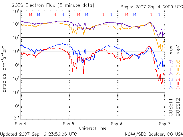 (c) NOAA/SEC ![]() SOHO衛星のMDIカメラによる太陽黒点 (c) SOHO (ESA & NASA) ![]() GOES衛星の太陽X線データ (c) NOAA/SEC ![]() | ||||||||||||||||||||||||||||||||||||||||||||||||||||||||||||||||