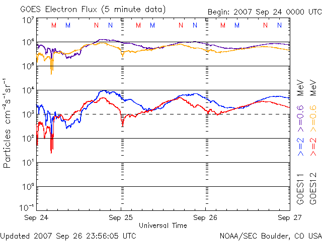 (c) NOAA/SEC ![]() GOES衛星の太陽X線データ (c) NOAA/SEC ![]() SOHO衛星のMDIカメラによる太陽黒点 (c) SOHO (ESA & NASA) ![]() | |||||||||||||||||||||||||||||||||||||||||||||||||||||||||||||||