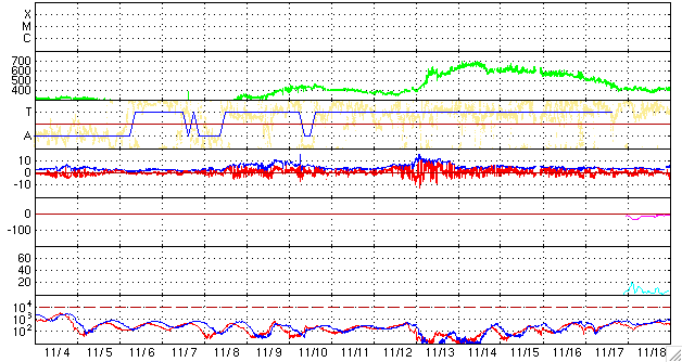 磁場の南北成分は、もっぱら北寄りで推移しました。