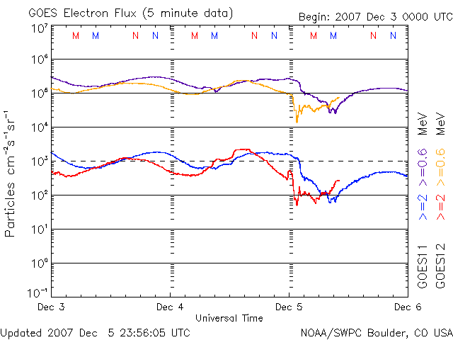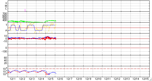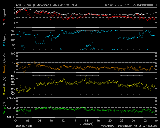 2007/12/ 5 10:23 太陽風に小規模の変化が始まっています。これから、400km/秒台まで上がりそうです。