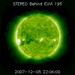 STEREO衛星紫外線望遠鏡EUVI195の太陽写真。6日7時(世界時5日22時)
