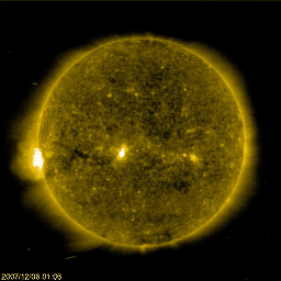 SOHO EIT284の太陽写真では、東側から明るい領域が上がって来ています。