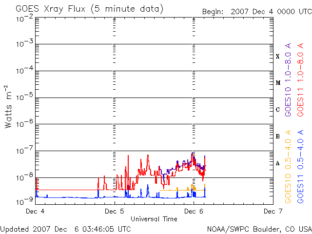 この影響でしょう、GOESのX線のレベルが上昇しています。