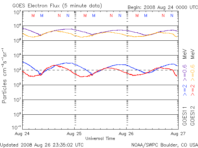 | 太陽放射線と放射線帯電子はともに静穏です。 |
