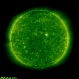 SOHO EIT195の太陽コロナは、全面がのっぺりと均等に光っていて、