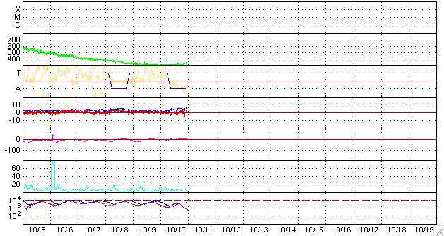 2008/10/11 08:47 更新 太陽風は低速で、磁気圏も穏やかです。これから高速風がやって来るでしょう。 担当 篠原 昨日お知らせした小さな黒点は、1004黒点群という番号が付きました。 しかし、黒点そのものはすぐに見えなくなってしまい、 現在の太陽は無黒点に戻っています。 SOHO EIT195を見てください。 1004群が現れた場所は、太陽の中心からやや南西(右下)に移動し、 小さな明るい光として残っています。 そして、現在の太陽には、この他にも明るい点がいくつも見えています。 これらはいずれも磁場が強まっている場所で、 このうちのいくつかは、更に強まって黒点が現れるかもしれません。 太陽風は、遅い状態が続いています。 速度は、300km/秒から330km/秒へ若干上がっていますが、たいした変化ではありません。 磁場強度も5nTへやや上がっていますが、通常レベルに戻った程度です。 このため、磁気圏はとても穏やかです。 AE指数には、小さな変化がいくらか見えている程度で、全体的には静穏です。 今日から明日にかけて、比較的短期間の高速風が始まると予想しています。 継続期間は、2〜3日と見られます。 SOHO EIT195を見ると、コロナホールは既に太陽の西側に大きく移動し、 既に、いつ高速風がやってきてもおかしくない状態になっています。 しかし、前周期の太陽風の変化を振り返ると(27日周期の図)、 高速風の到来はもう1日ほど遅くなっています。 高速風が始まる前には、太陽風の磁場が強まります。 その変化に注目して、高速風の始まりを見つけてください。 磁場強度が強まると、オーロラ活動も強まりやすくなります。 その時は、アラスカのライブカメラにも注目してください。 SOHO EIT195による、太陽コロナの様子。11日8時(世界時10日23時)。 (c) SOHO (ESA & NASA) ![]() SOHO衛星のMDIカメラによる太陽黒点 (c) SOHO (ESA & NASA) ![]() GOES衛星の太陽X線データ (c) NOAA/SWPC ![]() ACEが観測した太陽風の磁場(1番上の枠、白線は全体の強度、赤線は南北成分) および、太陽風の密度(3番目の橙線)、速度(4番目の黄線) (c) NOAA/SWPC ![]() リアルタイムAE指数 下段のAEグラフの値が高くなると、オーロラ活動が活発化しています。 (c) 京都大学, NICT ![]() シベリアで観測された3日間の磁場データ 右側の3分の1が、昨日のデータになります。グラフが上がったり下がったりすると、オーロラ活動が活発化しています。 (c) NICT ![]() 27日の太陽周期に合わせたデータプロット 太陽が同じ面を地球に向けていた27日前の変化から、今後を予想することができます。 (c) NICT