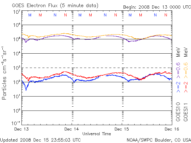 | 太陽放射線と放射線帯電子はともに静穏です。 |
