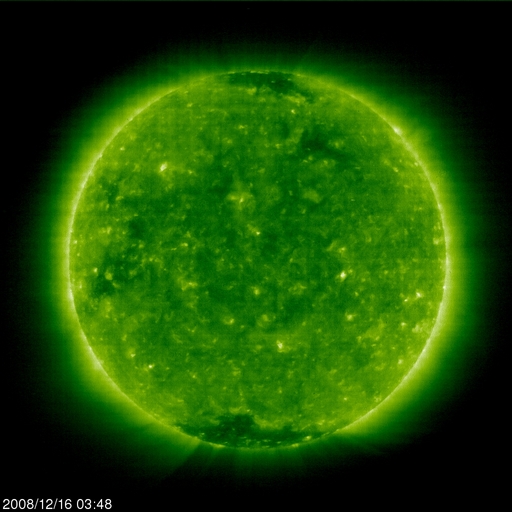 SOHO EIT195による、太陽コロナの様子。16日12時(世界時16日3時)。