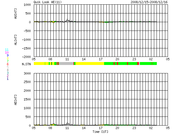 下段のAEグラフの値が高くなると、オーロラ活動が活発化しています。