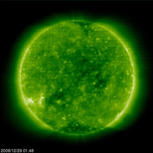 - 2008/12/25 13:10 高速風は500km/秒を割り、後半に入っています。太陽の東から新しい黒点が現れるかもしれません。