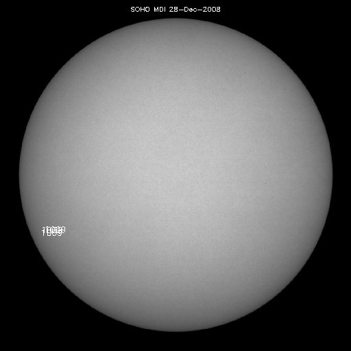 SOHO衛星のMDIカメラによる太陽黒点