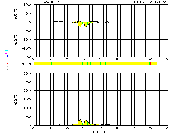 下段のAEグラフの値が高くなると、オーロラ活動が活発化しています。