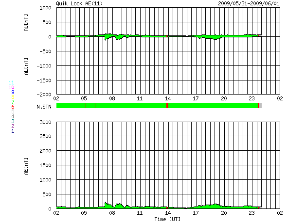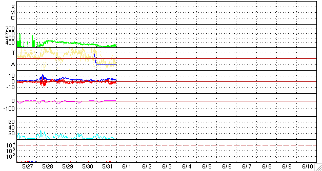 2009/ 6/ 1 10:28 更新 1019黒点群が出現しました。太陽風は低速で、穏やかです。 担当 篠原 太陽面に、1019黒点群が出現しました。 北東(左上)に寄ったあたりで、SOHO EIT195で明るく光っている部分です。 活動領域は前から見えていたのですが、 昨日のニュースの後くらいから、急に黒点群が発生しています。 磁場写真は更新されていないのですが、出現した緯度から考えて、 新しい、第24活動周期の黒点群でしょう。 X線のグラフにも小さな変化が見えています。 今後の活動に注目してみましょう。 太陽風は、速度320〜340km/秒と、低速で安定しています。 磁場強度も4nT前後と、比較的弱めの状態が続いています。 このため、磁気圏も静穏です。 ACEの図の後半で、太陽風磁場の南北成分が小さな南寄りになっています。 AE指数の図の後半が少し太くなっているのは、この影響でしょう。 明日までは、このまま低速の穏やかな太陽風が続くと思われます。 そして、明日、明後日以降に、 小規模の速度の上昇が見られる可能性があります。 27日周期の図で、5月6-7日に始まった速度の高まりの回帰です。 前周期では、最高速度が500km/秒に達した程度の変動でしたが、 今回は、コロナホールの規模が小さくなっているため、 速度の変化は更に弱まっている可能性があります。 どの程度の変化がやってくるのか、注目して下さい。 SOHO MDIによる、太陽可視光写真。北東(右上)に1019黒点群が出現しました。6月1日6時(世界時31日21時)。 (c) SOHO (ESA & NASA) ![]() SOHO EIT195による、太陽コロナの様子。1日10時(世界時1日1時)。 (c) SOHO (ESA & NASA) ![]() GOES衛星の太陽X線データ (c) NOAA/SWPC ![]() ACEが観測した太陽風の磁場(1番上の枠、白線は全体の強度、赤線は南北成分) および、太陽風の密度(3番目の橙線)、速度(4番目の黄線) (c) NOAA/SWPC ![]() リアルタイムAE指数 下段のAEグラフの値が高くなると、オーロラ活動が活発化しています。 (c) 京都大学, NICT ![]() シベリアで観測された3日間の磁場データ 右側の3分の1が、昨日のデータになります。グラフが上がったり下がったりすると、オーロラ活動が活発化しています。 (c) NICT ![]() 27日の太陽周期に合わせたデータプロット 太陽が同じ面を地球に向けていた27日前の変化から、今後を予想することができます。 (c) NICT