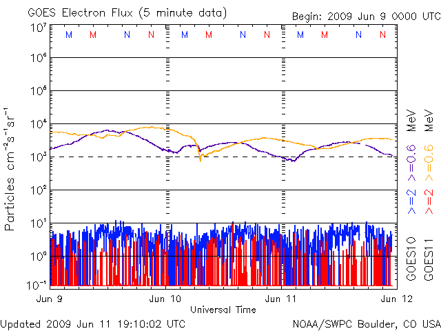 | 太陽放射線と放射線帯電子はともに静穏です。 |