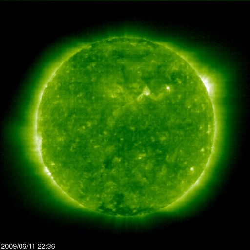 SOHO EIT195による、太陽コロナの様子。12日7時半(世界時11日22時半)。