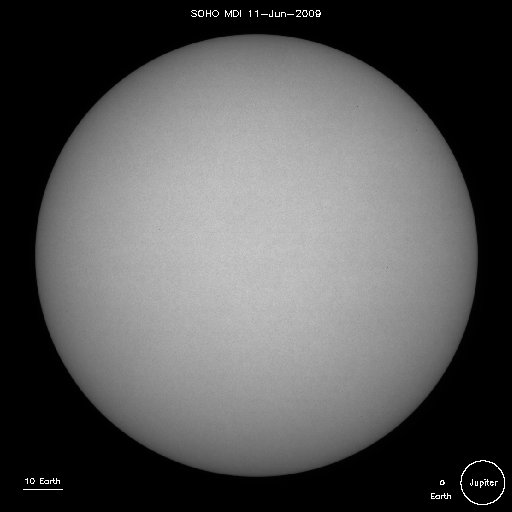 - 2009/ 6/ 9 10:22 1020黒点群が短時間出現しました。太陽風の速度は300km/秒に下がり、とても穏やかです。