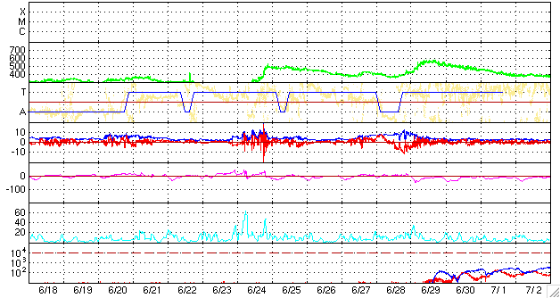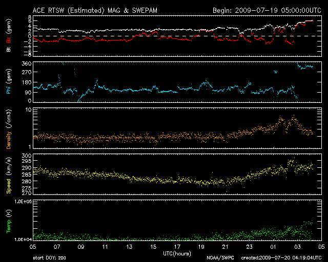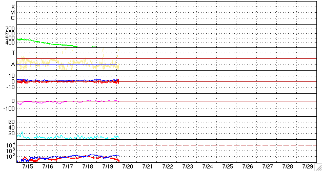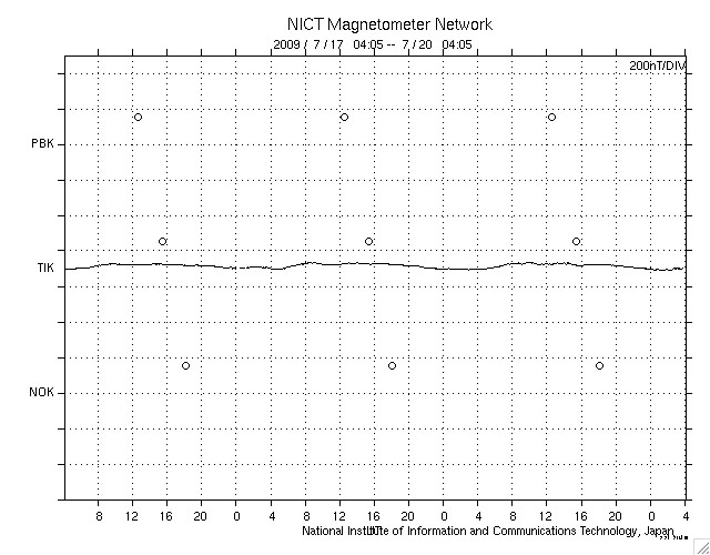 - 2009/ 7/19 12:05 290km/秒のとても遅い太陽風が続いています。磁気圏活動もとても静かです。
