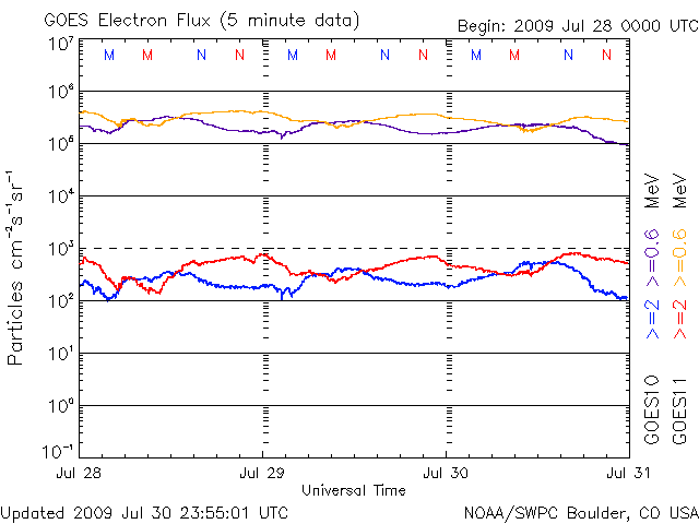 | 太陽放射線と放射線帯電子はともに静穏です。 |