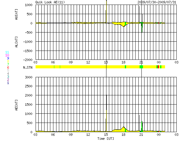 下段のAEグラフの値が高くなると、オーロラ活動が活発化しています。