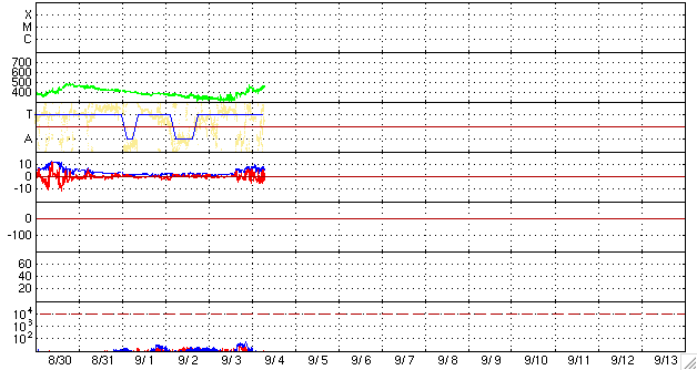 - 2009/ 9/ 3 11:57 太陽風は低速風に変わり、とても穏やかです。