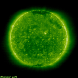 - 2009/ 9/ 2 10:06 1025黒点群が出現していました(もう消えています)。太陽風は400km/秒付近で穏やかです。