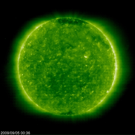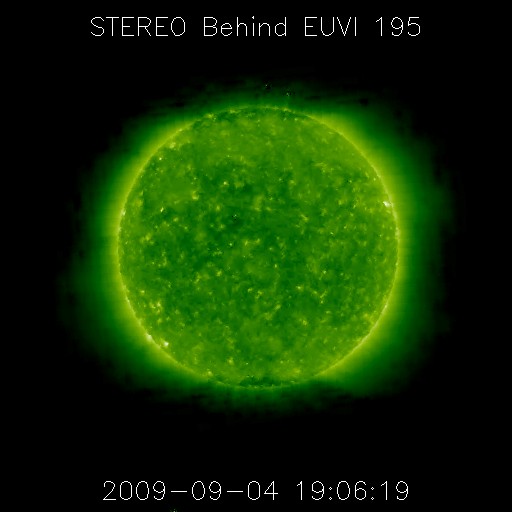 2009/ 9/ 5 10:56 更新 太陽風の速度は、下がり始めています(440km/秒)。これからしばらく穏やかな太陽風が続くでしょう。 担当 篠原 太陽風の速度は、早くも低下を始めています。 昨夜は、480km/秒まで速度が上がっていましたが、 今朝に入って低下に向かい、現在440km/秒と高速状態は終わりつつあります。 磁場強度は、昨夕のニュースの時点では7nTほどの強さを持っていたのですが、 その後すぐに弱まり始め、夜のうちに3nTへ下がってしまいました。 現在もそのままで、 このことからも、太陽風の乱れは終わりが近いと考えられます。 磁気圏のオーロラ活動も、 太陽風磁場の影響が強かったのが昨夕のニュースの頃までだったので、 それ以降は落ち着いてしまいました。 掲載しているAE指数では、最初に変動がありますが、以降はほとんど変化していません。 もう少し盛り上がるかと思ったのですが、少し空振りな気分です。 小規模の太陽風の変化も終わり、ここから長い静穏状態が続きます。 SOHO EIT195の太陽コロナは、全体的にぼんやりと光っていて、コロナホールは見られません。 これは、STEREO Behindも同様で(2枚目の写真)、 これから10日くらい低速の太陽風が続くでしょう。 SOHO EIT195による、太陽コロナの様子。5日9時半(世界時5日0時半)。 (c) SOHO (ESA & NASA) ![]() STEREO Behindによる太陽コロナ。地球よりも3日半ほど先の太陽を見ています。こちらでも何も見えません。 (c) NASA ![]() SOHOによる、太陽可視光写真。現在は無黒点に戻っています。4日17時半(世界時4日8時半)。 (c) SOHO (ESA & NASA) ![]() | |||||||||||||||||||||||||||||||||||||||||||||||||||||||||||||||||||||||||||||||||||||||||||||||||||||||||||||||||||||||||||||||||||||||||||||||||||||||||||||||||||||||||||||||||||||||||