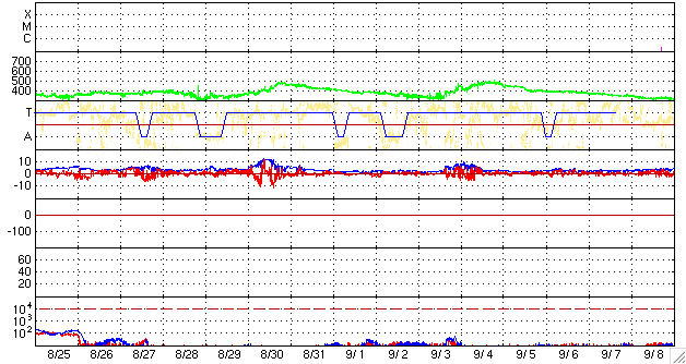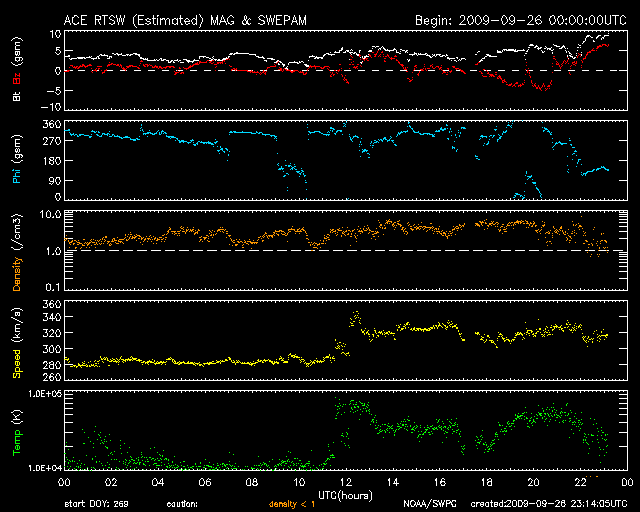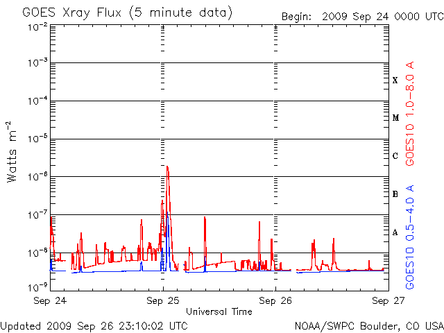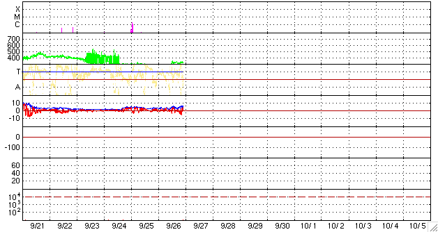 - 2009/ 9/25 10:11 C2のフレアが発生しました。太陽風はかなり低速で、磁気圏も静かです。