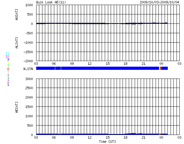 磁気圏もとても静かで、AE指数は全く変化していません。