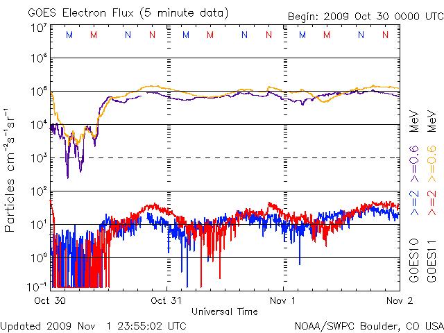 | 太陽放射線と放射線帯電子はともに静穏です。 |