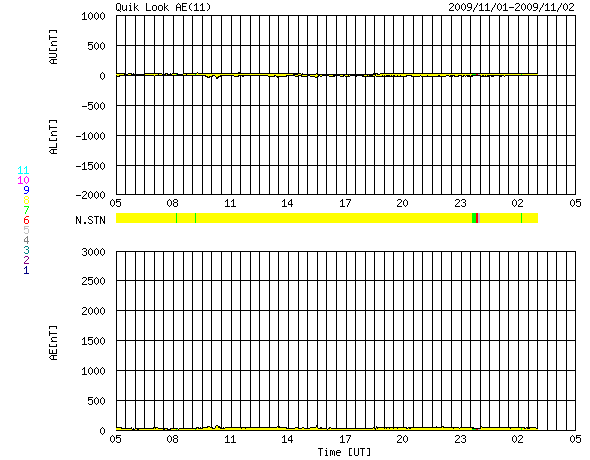 下段のAEグラフの値が高くなると、オーロラ活動が活発化しています。