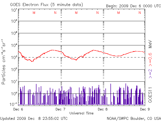 | 太陽放射線と放射線帯電子はともに静穏です。 |