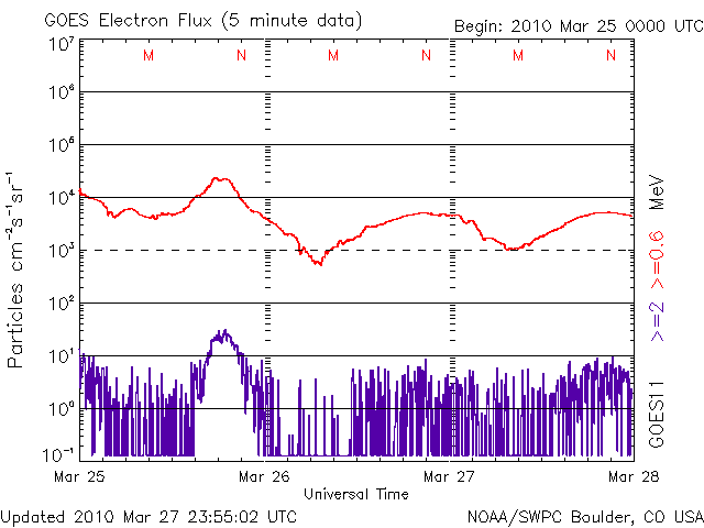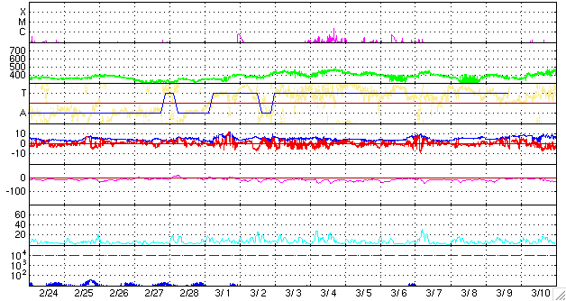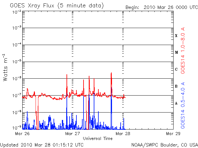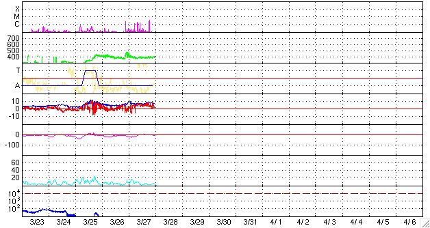 2010/ 3/27 10:38 C2.5の小規模フレアが発生しました。太陽風の磁場が強まっています。
