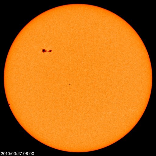 2010/ 3/25 09:35 300km/秒付近の遅い太陽風が続いています。1057黒点群が少し大きくなっています。