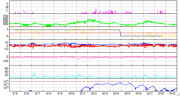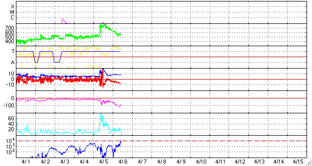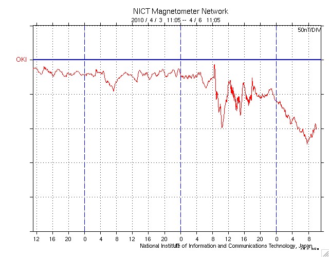 沖縄の磁場は、-100nT下がり、立派な磁気嵐になっています。