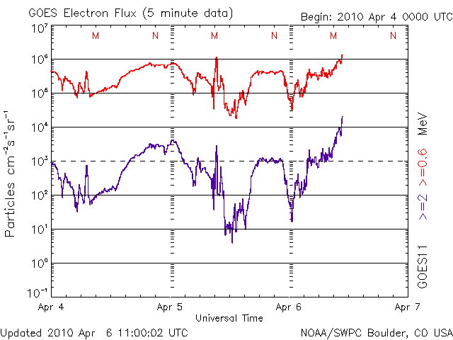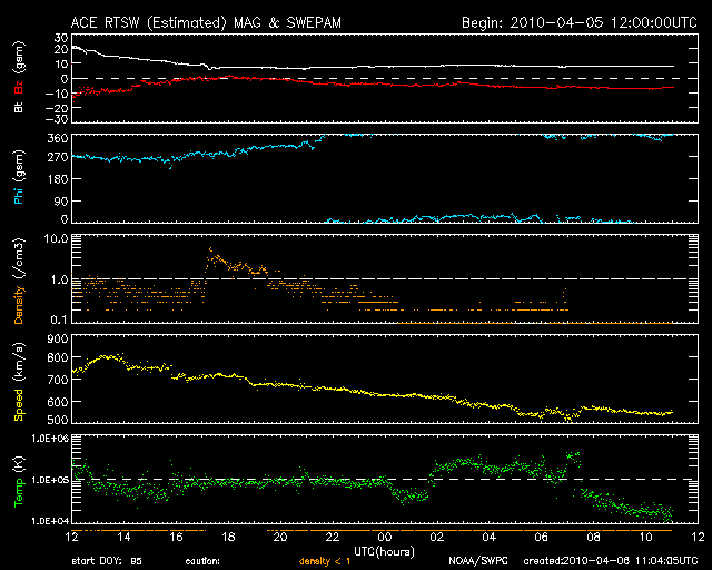 - 2010/ 4/ 5 13:20 500km/秒ほどの高速風が続き、オーロラも活発に続いています。