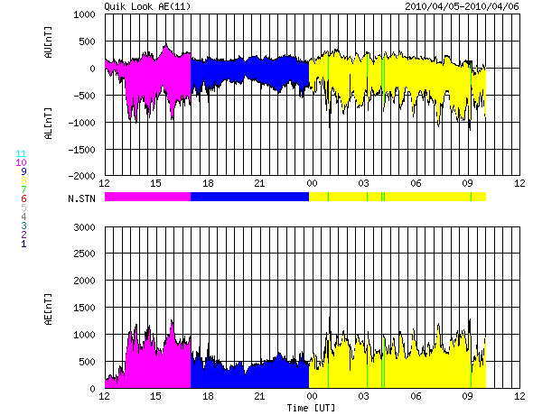 - 2010/ 4/ 2 08:49 太陽風磁場南向きの影響で、オーロラ活動がやや活発に続いています。