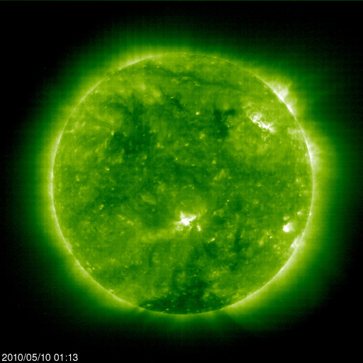 2010/ 5/10 10:32 更新 太陽は無黒点です。太陽風は低速になりました。4月までの無黒点日数をまとめます。 担当 篠原 2月の報告以来3カ月ぶりの掲載になりますが、太陽の無黒点日数の推移を紹介します。 2007年頃から、太陽では無黒点の日がどんどん増えていきました。 2009年8月に、とうとう1カ月全て無黒点となりましたが、 そこから急に減少に転じ、2010年2月にはとうとう無黒点日数0日を迎えました。 これにより、この表の出番も終わったと考えていたのですが、 太陽活動もそう簡単に進行するものでもないようで、 3月頃からフレア活動が小ぶりになり、4月には無黒点の日が長く続いたりしました。 SIDCの発表によると、4月の無黒点日は12日と、1カ月の40%の日数に達しています。 ここから再び大きく増加するということはないだろうと思いますが、 これは勝手な予想でしかありませんので、 もうしばらく推移を見守ることにしましょう。 以下の表と、記事の下の図をご覧ください。