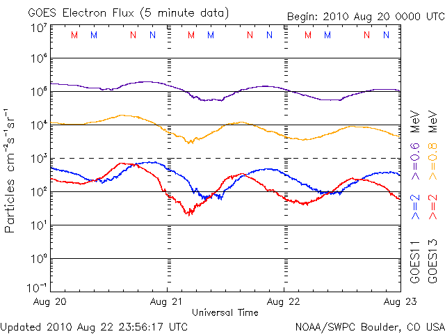 (c) NOAA/SWPC ![]() GOES衛星による、静止衛星軌道における高エネルギー電子の変化 (c) NOAA/SWPC ![]() | ||||||||||||||||||||||||||||||||||||||||||||||||||||||||||||||||||||||||||||||||||||||||||||||||||||||||||||||||||||||||||||||||||||||||||||||||||||||||||||||||||||||||||||||||||||||||||||||||||||||||||||||