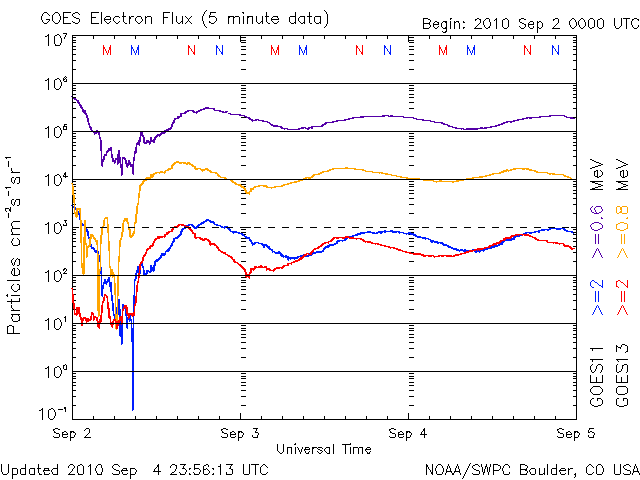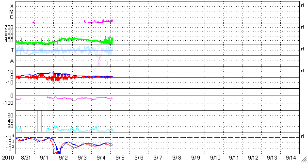 2010/ 9/ 1 09:29 低速の太陽風が続き、磁気圏もとても静かです。低速風はしばらく続くでしょう。