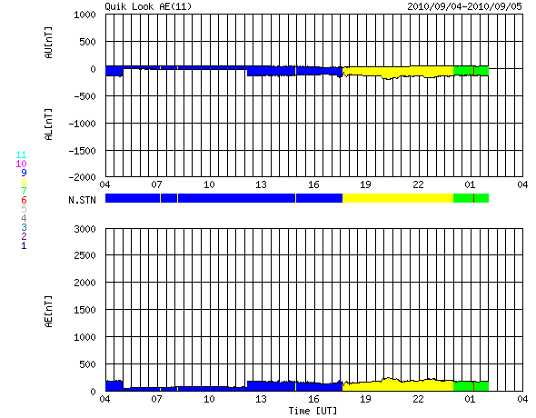 下段のAEグラフの値が高くなると、オーロラ活動が活発化しています。