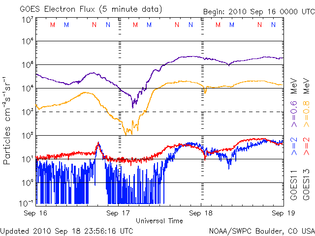 太陽放射線と放射線帯電子はともに静穏です。
