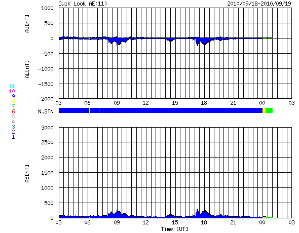 AE指数では、小さな活動が2ヶ所で発生していますが、