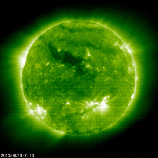 そのコロナホールは、今日のSOHO EIT195では、