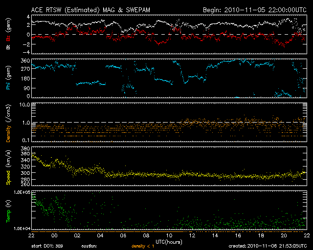 - 2010/11/ 4 11:03 太陽の東端で、Cクラスのフレアが発生しています。太陽風は低速ですが、弱いオーロラ活動が発生しています。