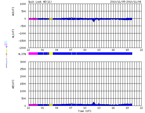 下段のAEグラフの値が高くなると、オーロラ活動が活発化しています。