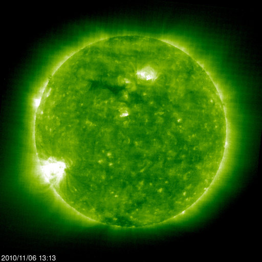 - 2010/11/ 2 09:44 1117黒点群は最後にC1のフレアを起こしました。太陽風は300km/秒近くまで遅くなっています。
