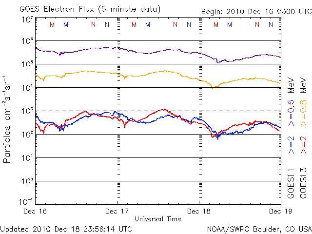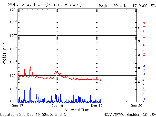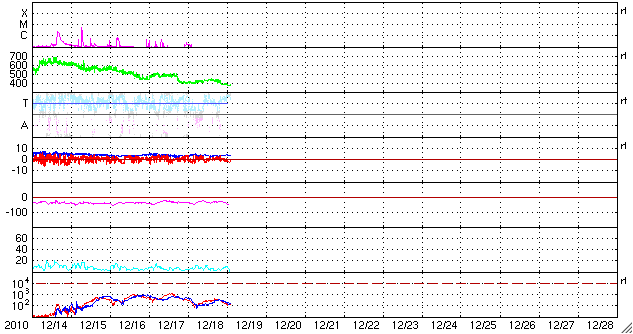 2010/12/14 12:18 太陽風は550km/秒の高速風になりました。磁気圏活動は低めです。