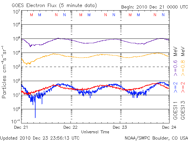 GOES衛星による、静止衛星軌道における高エネルギー電子の変化