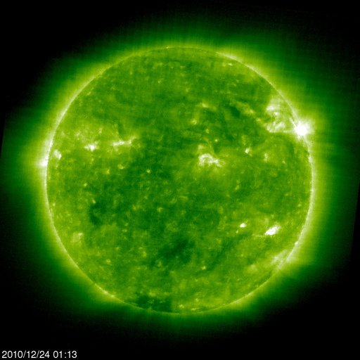 SOHO EIT195では、太陽に大きなコロナホールなどは見られず、